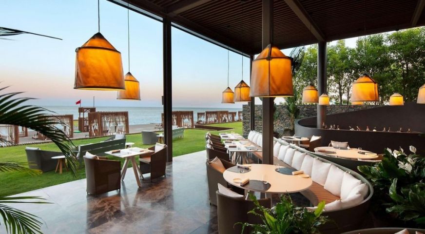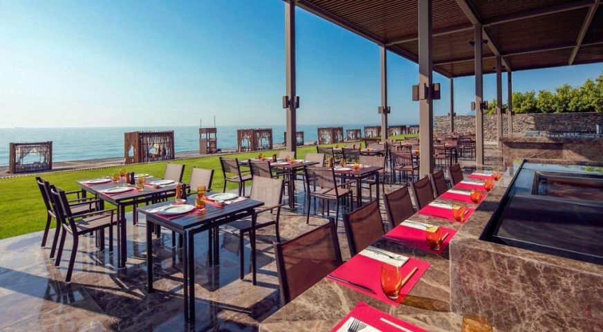 Концепцията включва: закуска - различни тематични сервировки: диетичен бюфет, руски бюфет; сокове от портокал, грейпфрут, ябълка и моркови, асортимент от крем чай; обяд, вечеря в основен ресторант или на плажа, 24 часа а-ла-карт меню, закуски, асортимент от сладкиши, шоколатиер, пресни плодове и сладкиши в определени часове, местни и вносни алкохолни и безалкохолни напитки. 3 а-ла-карт ресторанта - международен, турски и рибен (безплатно), 4 а ла карт ресторанта — месо, тепаняки, гастро, ресторант за здравословна храна (срещу заплащане, при резервация), ресторант Emerald (безплатна закуска и обяд за Royal Beach Villa, Presidential Villa, с резервация, за Suite, Maxx Laguna Villa платено). Румсървисът е на разположение 24 часа в денонощието срещу заплащане.