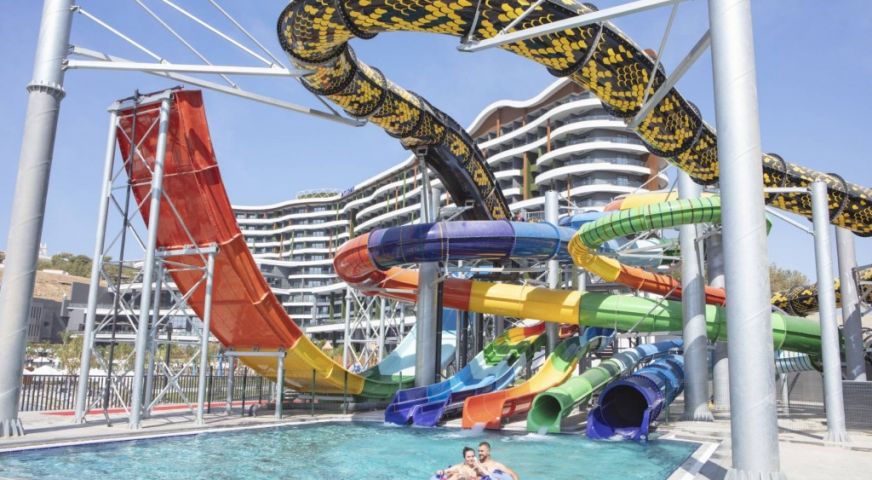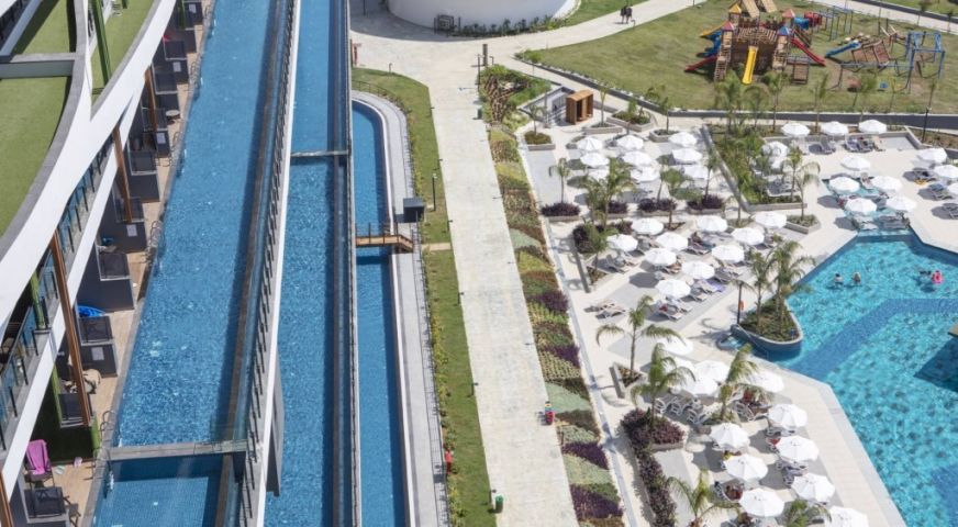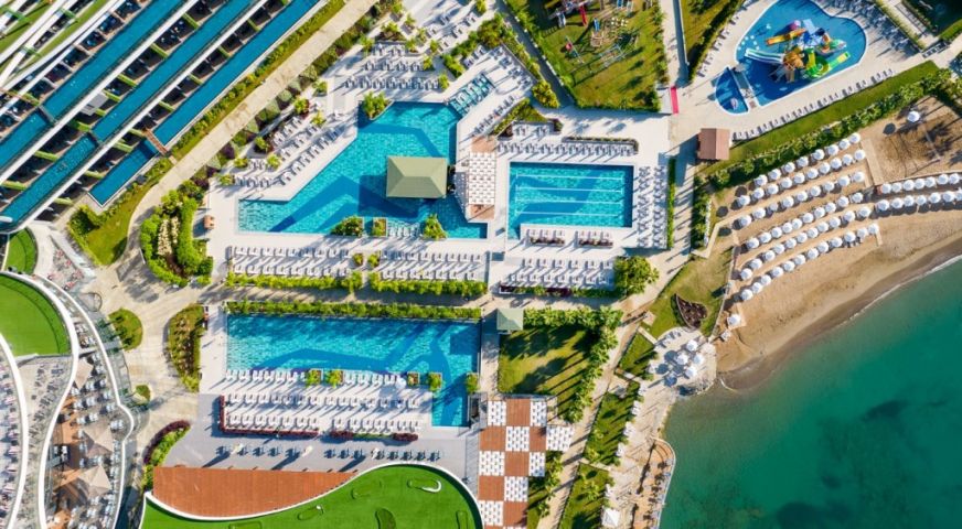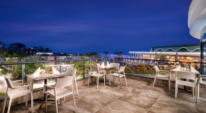 На територията на хотела: Основен ресторант (диетично меню), 5 a лa карт ресторанта (турски, рибен, италиански, далекоизточен - по предварителна уговорка, посещение на един ресторант седмично - безплатно, тепаняки - платено), 2 снек ресторанта, 8 бара, сладкарница, 2 открити басейна (един с полуолимпийски размери, 16+), 1 закрит басейн, Аквапарк за възрастни и деца, Спа център, магазини, пералня, фризьорски салон, лекар на повикване, паркинг, WiFi в стаите и общи части на хотела - безплатен.
