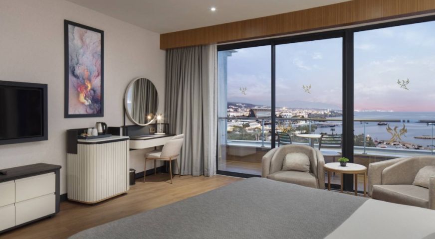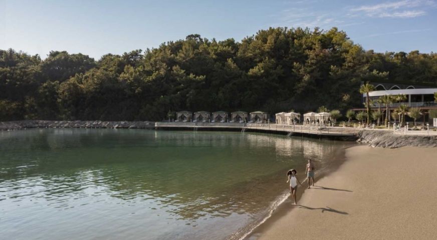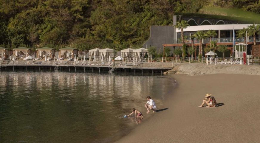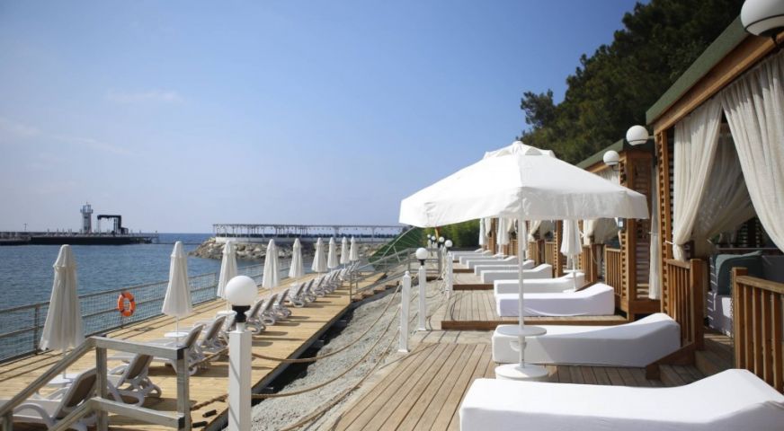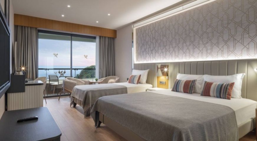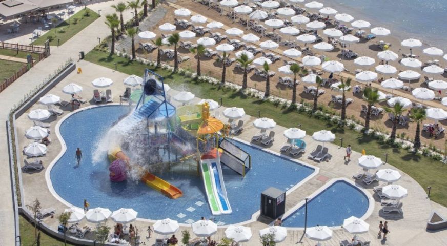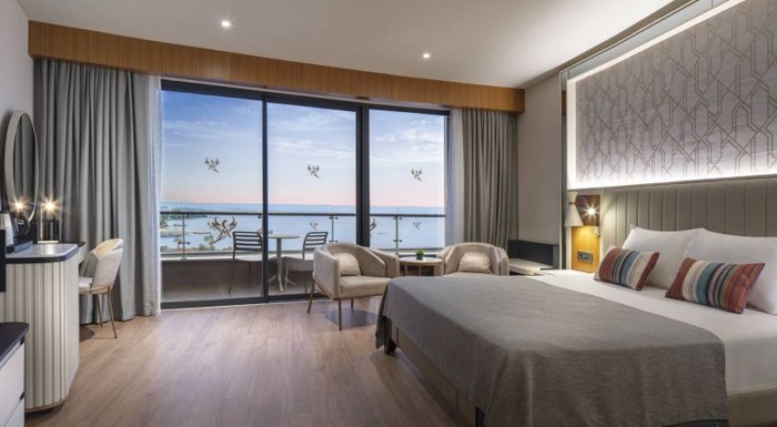Разположение: Хотелът се намира на 90 км от летището в Анталия, на 35 км от Алания, в района на Окурджалар, на брега на морето. Построен е през 2020 г. на обща площ от 30 000 м².