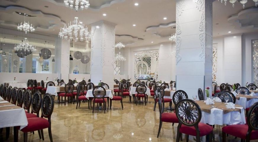 Основен ресторант, 2 а-ла-карт ресторанта (италиански и турски, 1 безплатно посещение на 1 от ресторантите при минимум 7 нощувки), 5 бара, 2 открити и 1 закрит басейн, 2 водни пързалки, СПА център.