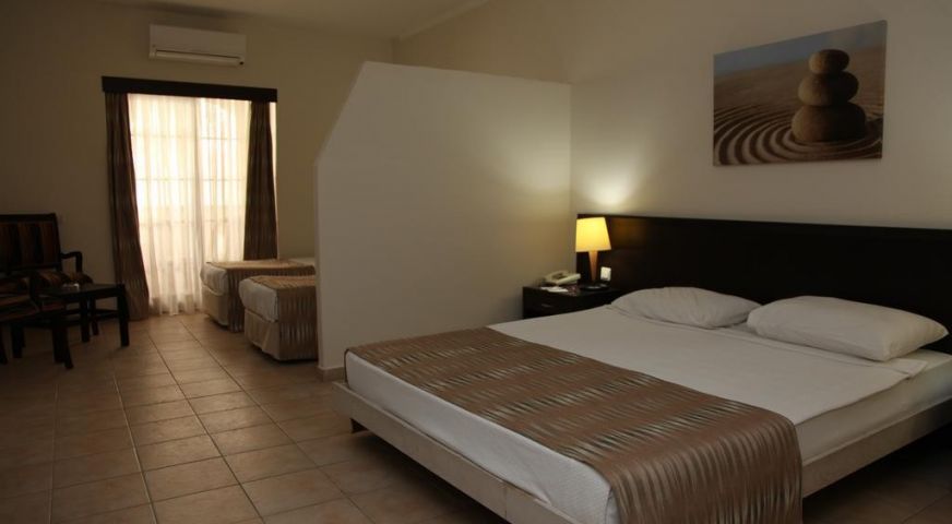 Стаи в основната сграда: 157 стандартни стаи Hotel Standard Rooms (изглед басейн, градина или планина - 25 м2.), 38 фамилни стаи Hotel Family Rooms (изглед басейн, градина или планина – 30 м2.), 312 стандартни клубни стаи Club Standard Rooms (изглед градина, разположени на втора линия през мост, на около 500 м. от плажа – 20 м2.), 48 клубни фамилни стаи Club Family Rooms (изглед градина, разположени на втора линия през мост, на около 500 м. от плажа – 31 м2.).