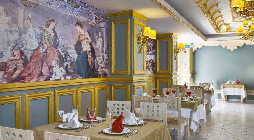 На територията на хотела: СПА, фитнес център, 2 басейна за възрастни, 2 детски басейна с пързалки, различни спортове и анимации- аеробика, водна гимнастика, дартс, тенис на маса. Вечерна анимация- дискотека, жива музика, фолклорни и тематични вечери. Италиански, турски и интернационален ресторант, кафене, снек бар на плажа и до басейна, нощен бар.