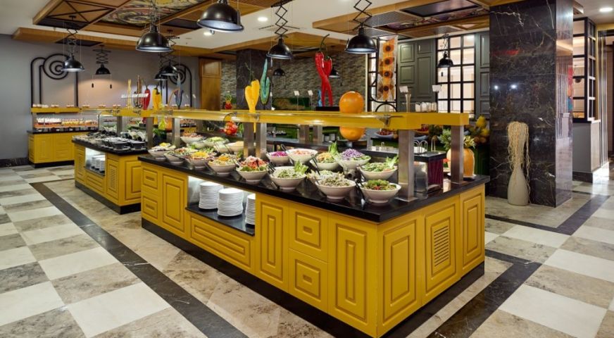 Основен ресторант, 3 а- ла - карт ресторанта (турски, азиатски, италиански - с предварителна резервация, веднъж безплатно за 7 нощувки), 5 бара, 2 открити и един закрит басейн, дискотека, сладкарница, Безплатни услуги: Сауна, турска баня, парна баня, фитнес,аеробика, дартс, плажен волейбол, пинг понг, анимация. Платени услуги: Масаж, СПА център, фризьорски и козметичен салон, ютия, телефон, турско кафе, магазини, рент - а кар.