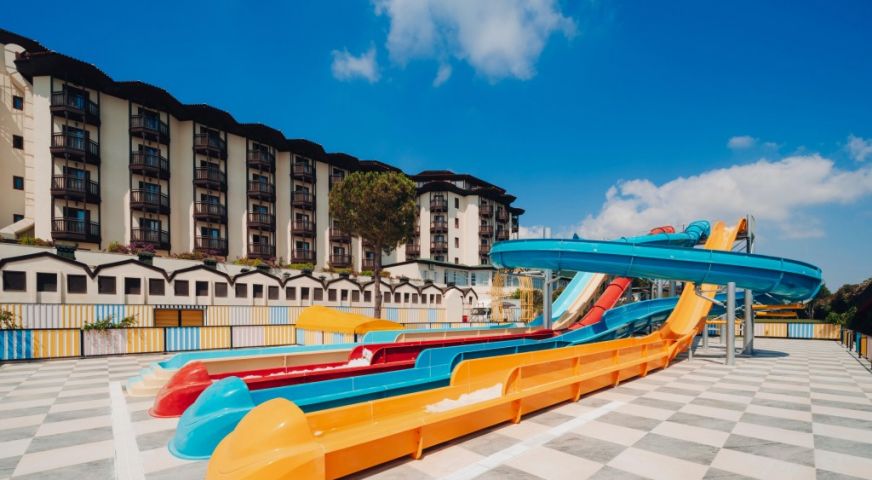 За децата: Детски бюфет, детски басейн, детски аквапарк с водна кула и 6 водни пързалки, детска площадка, мини клуб (4-12 г.), тийн клуб (13-17 г.), мини диско, детска анимация, детско столче, детска количка (под наем).