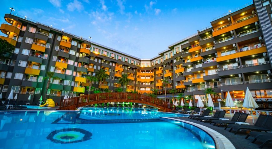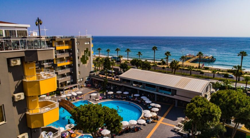 Хотелът се намира на 135 км. от летище Анталия, на 7 км. от центъра на Алания, на брега на морето в района на Махмутлар. Построен е през 2001г. и е реновиран през 2020г. с обща площ 12 000 м2.