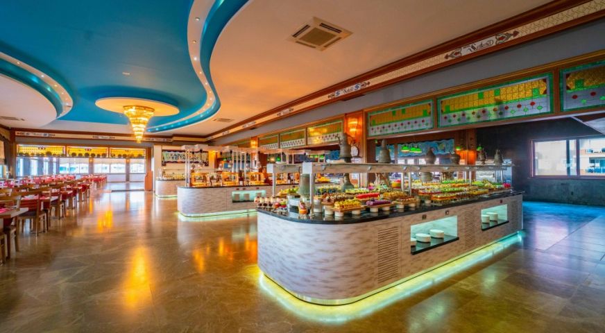 Основен ресторант, 5 бара, 2 открити басейна, закрит басейн, водни пързалки, детски басейн, магазини, SPA център, фитнес център, дискотека, амфитеатър, конферентни зали, паркинг. За децата: детски басейн, водни пързалки, мини клуб (4-12 г.), анимация.
