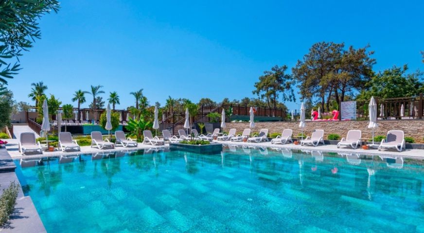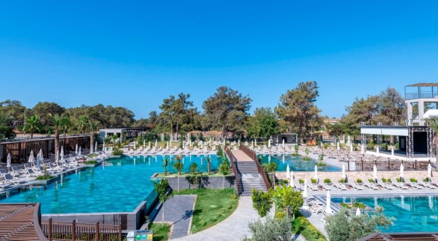 Разположение: Хотелът е построен върху обширна територия с площ от 13 000 m². Намира се в най-зелената част на курорта Сиде, на 65 километра от международнотолетище на Анталия, на около 7 километра от античния град на Сиде, на 4 километра от град Манавгат и на 550 метра от брега на морето. Заобиколен е от морето, река Манавгат, езерото Титрейенгьол. Хотелът е с концепция само за възрастни ( 16+).