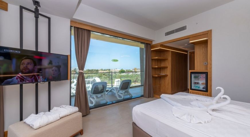 На територията на хотела: Основен ресторант, 2 а-ла-карт ресторанта, предлагащи ястия от южната част на Мала Азия и от района на Черно море, сладкарница, 6 бара, сред които снекбар и дискотека, бистро и ресторант на плажа, 3 открити басейна, един от които е оборудван с атрактивни водни пързалки, SPA център със закрит басейн, турска баня, парна баня и сауна, фитнес център, целодневна анимационна програма, включваща разнообразие от спортни и развлекателни дейности, безплатен безжичен интернет на територията на целия хотел и на плажа.