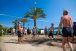 Собствен - пясъчно-каменист. Чадъри и шезлонги на плажа и при басейна - безплатно. Плажни кърпи - срещу депозит. Препоръчваме носенето на аква обувки.