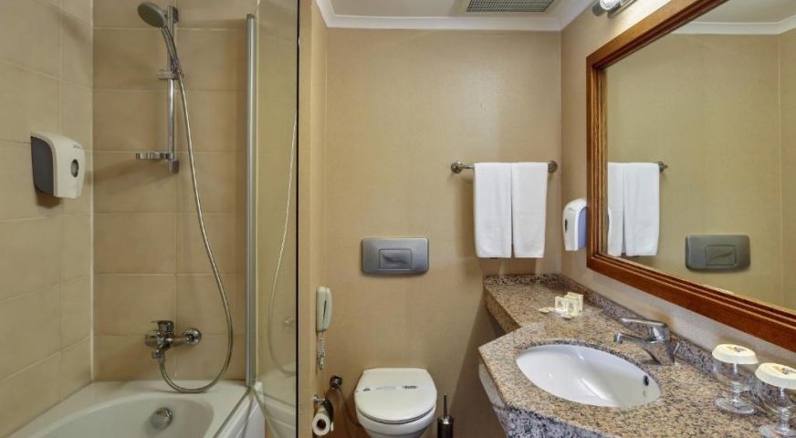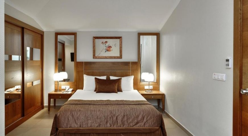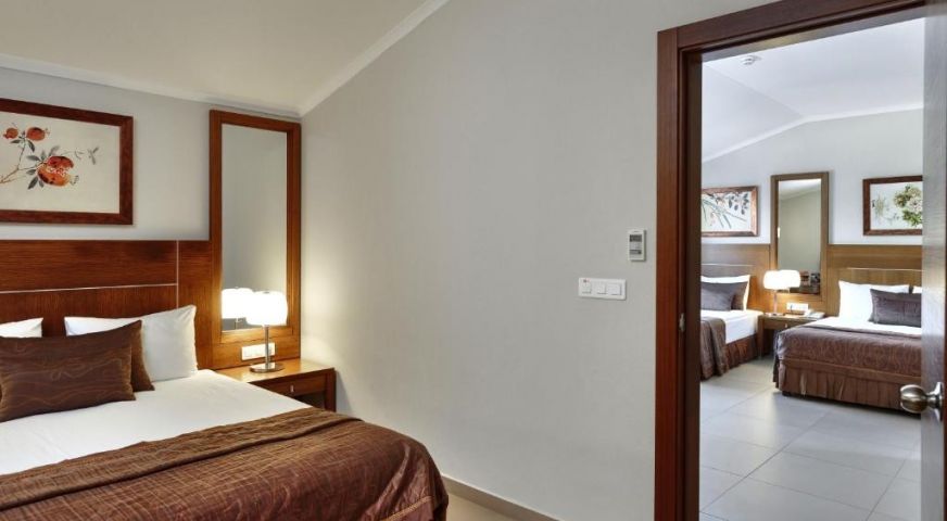 В стаите: Хотелът се състои от една основна 6-етажна сграда (Main Building) и седем 3-етажни клубни корпуса (Club). Разполага с 583 стаи, които са оборудвани с централен климатик, LCD телевизор, телефон, баня с вана, сешоар, мини-бар безплатно (вода, бира и разхладителни напитки - ежедневно зареждане), сейф (безплатно), балкон, Wi-Fi (безплатно), под - мокет (Main Building), теракот (Club). Почистване на стаите - ежедневно, смяна на спално бельо - 3 пъти седмично.