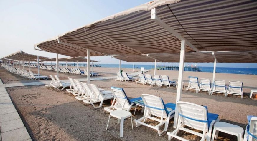 Плаж: Собствен, пясъчно-чакълест непосредствено пред хотела, 1ва линия. Шезлонги, чадъри, матраци – безплатно, плажни кърпи – при поискване, безплатно. Бар на плажа - безплатно.