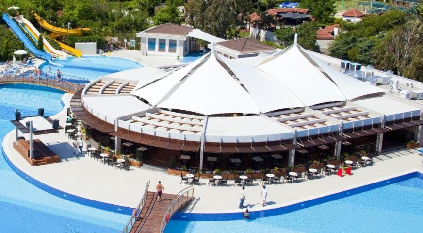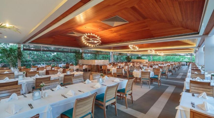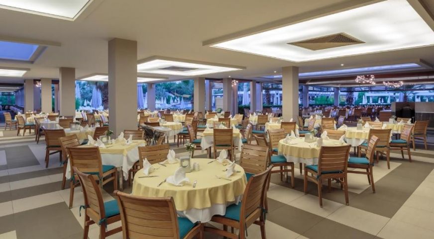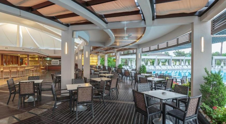 На територията на хотела: Основен ресторант (предлага диетична и вегетарианска храна), 5 а ла карт ресторанта (рибен, италиански, турски, мексикански, китайски - посещение на 1 ресторант безплатно за седмичен престой, с предварителна резервация), 6 бара, дискотека, 2 открити басейна, закрит басейн, басейн с 4 водни пързалки, Спа център, 2 конферентни зали.