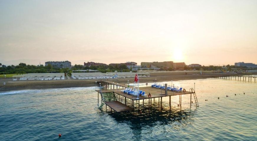 Разположение: Sunis Elita Beach Resort 5* се намира на 1 км от Къзълаач, на 81 км от международно летище Анталия, на 15 км от град Манавгат, на брега на морето. Хотелът е построен е през 2004 г. и се простира върху територия с обща площ от 83, 000 м², поетапно правени реновации през годините, последно през 2019 г.