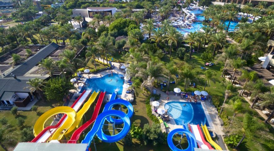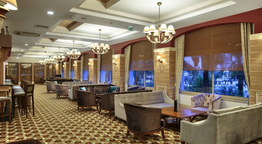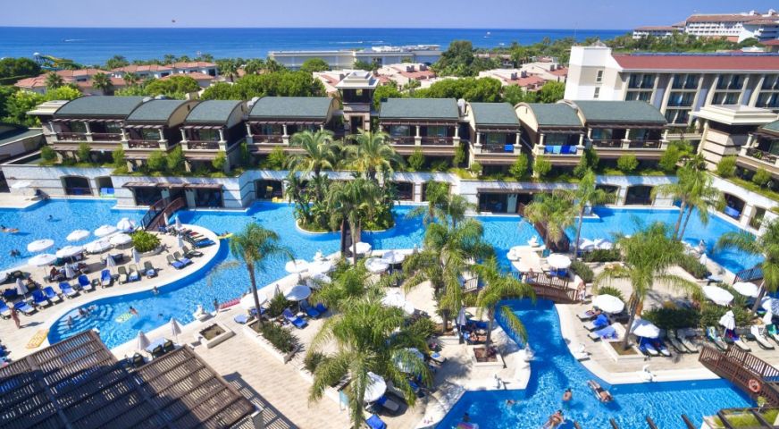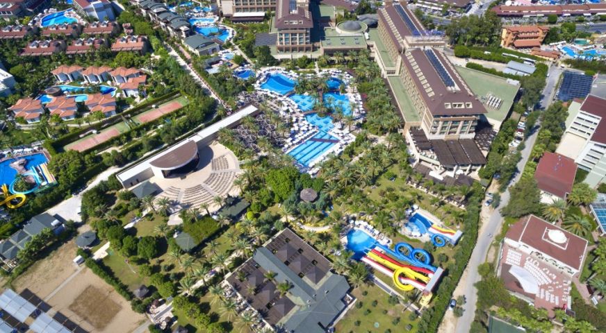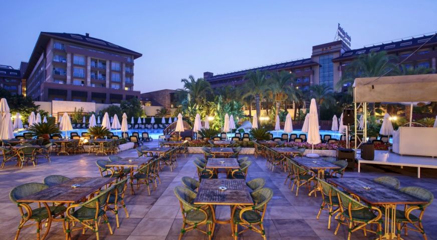 На територията на хотела: 5 ресторанта, 6 а-ла-карт ресторанта (турски, барбекю, рибен, италиански, мексикански, азиатски - с предварителна резервация), 8 бара, сладкарница, дискотека, кино, тенис корт, зала за игри, 3 открити басейна, един от които с 4 пързалки за възрастни, и 1 закрит басейн (с подгряване през зимния сезон), СПА център, фитнес зала, 3 конферентни зали, паркинг.