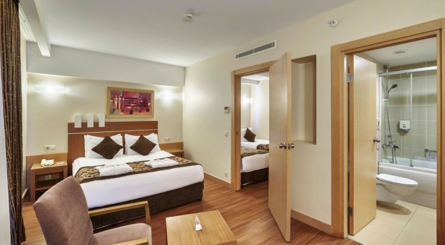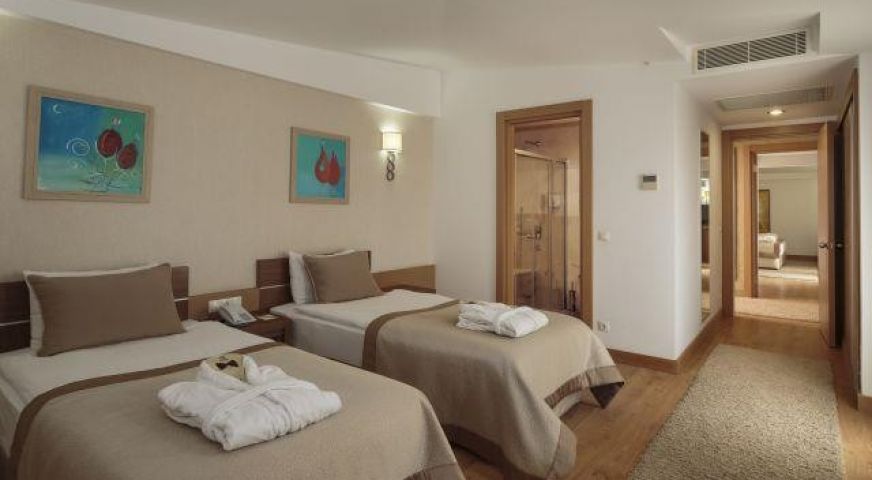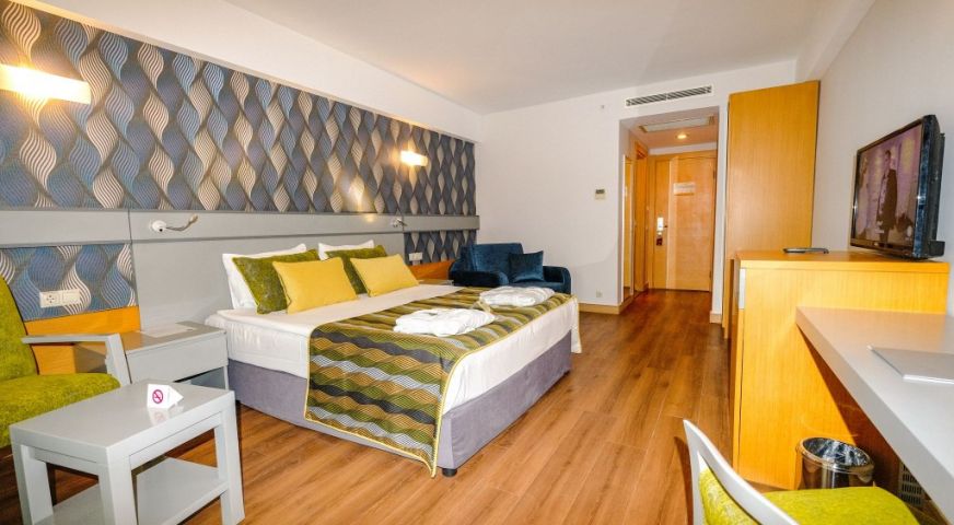 В стаите: Хотелът се състои от три 5 етажна сгради и къщички на езерото, оборудвани с асансьори и разполага с общо 673 стаи. Всички стаи са оборудвани с климатик, телевизор, телефон, баня с душ/вана, сешоар, мини бар (безплатен), сет за кафе/чай, сейф (безплатен). Почистване на стаите - всеки ден, смяна на кърпите – при заявка, смяна на спалното бельо – 3 пъти седмично.