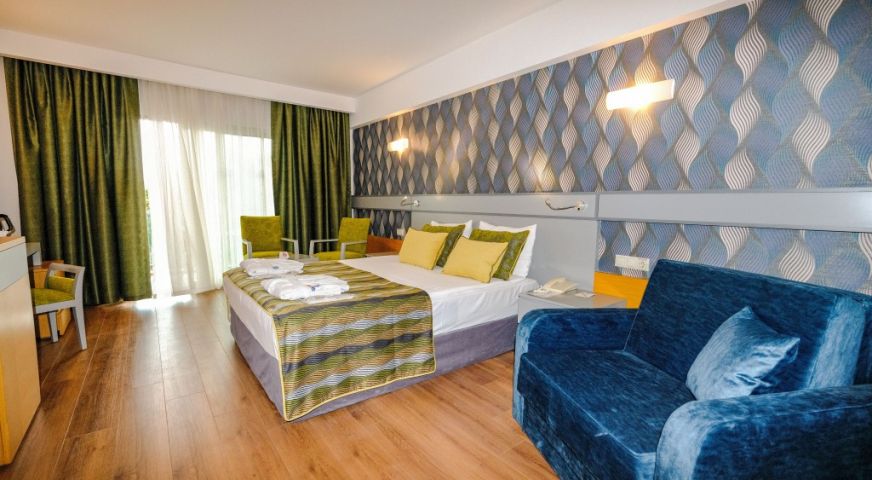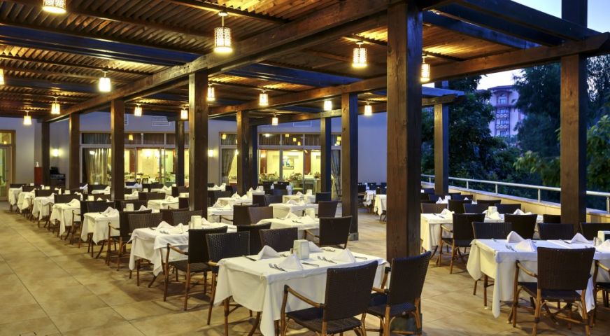Разположение: Хотелът се намира на 60 км. от летище Анталия, на 9 км от Манавгат и на 2 км от античния град Сиде, на брега на морето. Построен през 2006 г. върху територия с обща площ 60000 м², реновиран през 2018 г.