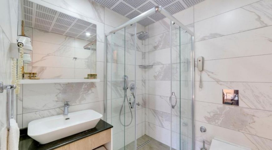 В стаите: Хотелът предлага сейф в стаята, безплатен достъп до интернет, смяна на спално бельо три пъти седмично, индивидуален климатик, 24-часов рум сервиз, телефон, ежедневно почистване, сешоар, балкон или тераса, безплатен минибар с ежедневна вода, душ и телевизор.