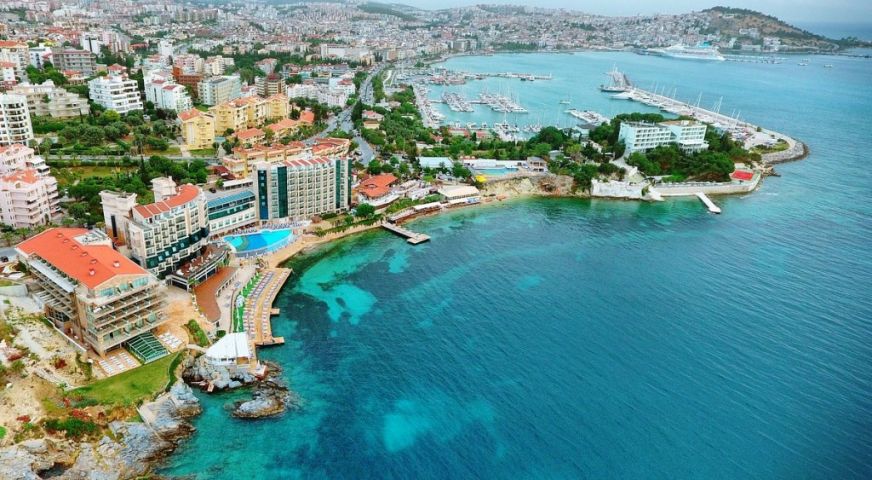 Хотелът се намира в курортния град Кушадасъ, до яхтеното пристанище за яхти и лодки, на тихо и спокойно място. Разполага с частен плаж и инфинити басейн със спираща дъха гледка към Егейско море. Перфектен за любителите на активния отдих и спорта. Развитата инфраструктура, модерният комфорт и отличното местоположение на хотела ще осигурят една незабравима и разнообразна почивка.