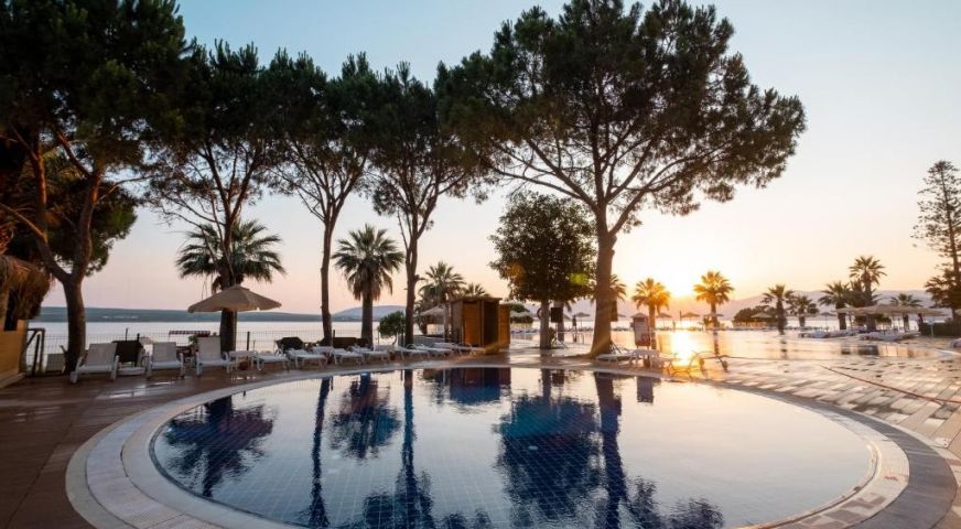 Хотелски комплекс Duja Didim Resort се намира в Дидим и предлага частен плаж, фитнес център и открит басейн. Осигурени са безплатен Wi-Fi и денонощна рецепция. Всяка стая разполага с климатик, балкон, кът за сядане и минибар. Самостоятелната баня е с душ и сешоар. Има изглед към градината и морето. Хотелът предлага ол инклузив обслужване, включващо закуска на шведска маса, обяд и вечеря в ресторанта на място. В цената са включени местни и вносни напитки. Гостите могат да релаксират в сауната или турската баня. На място се предлагат велосипеди и автомобили под наем. Детските съоръжения могат да играят безопасно на детската площадка или да се забавляват в детския клуб. Предлагат се и детегледачески услуги. Хотелът е на 6,1 километра от центъра на град Дидим и на 6 километра от автогарата на Дидим. Летище Милас-Бодрум е на 92,9 километра.
