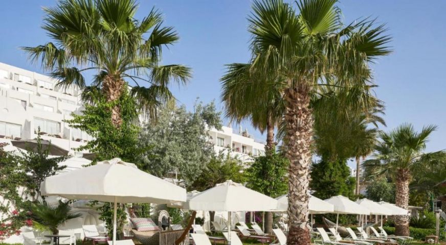 Хотелът е построен непосредствено на морския бряг и от територията му се разкрива живописна панорамна гледка към Егейско море.
