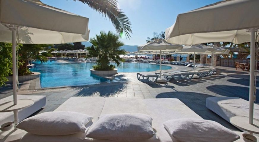 Хотелът се намира на 35 км от летище Милас, на 1 км от центъра на Бодрум, в района на Бардакчъ, на брега на морето. Разполага с обща площ от 22 000 m².