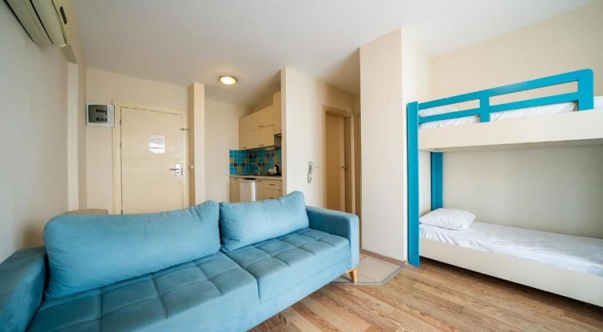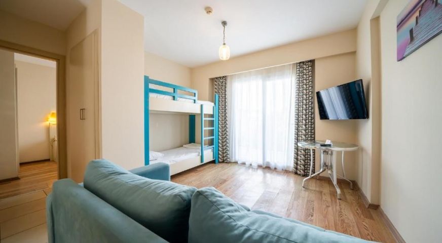 В стаите: В стаята има сейф, който се предлага срещу заплащане. Всяка стая има индивидуален климатик. Стаята се почиства ежедневно. Стаята разполага с телефон, паркет, сешоар, балкон, минибар, душ и телевизор.