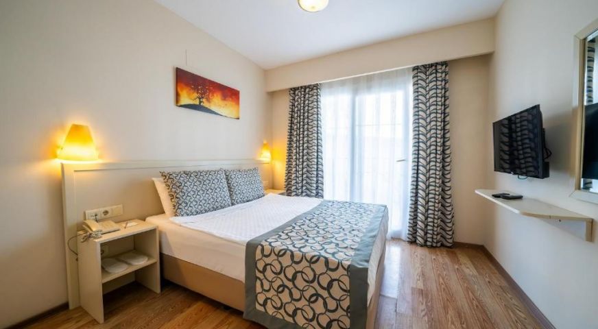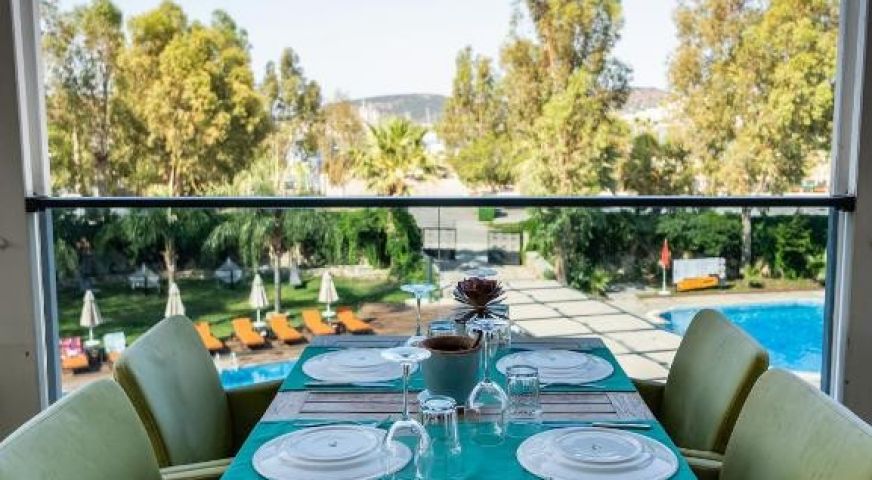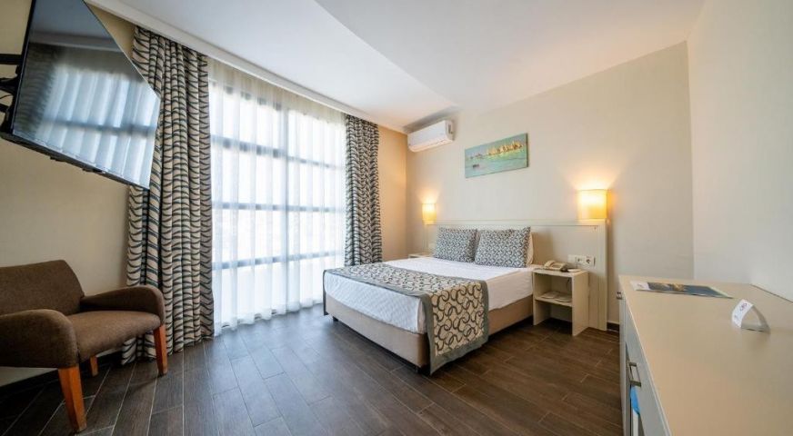 Разположение: На 35 км от летището и на 1 км от центъра на Бодрум, в село Гюмбет, на 100 м от плажа. Територията на хотела е разделена от път с подземен проход.