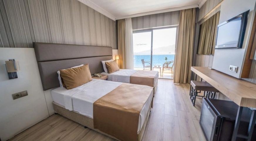 Хотелът разполага с 192 стаи, от които 45 стандартни с изглед градина, 4 стандартни без балкон, 68 стандартни с изглед море, 5 стандартни с изглед море без балкон, 26 фамилни с изглед градина с балкон, 2 фамилни с изглед градина без балкон, 236 фамилни с изглед море с балкон, 7 фамилни с изглед море без балкон, 10 делукс с изглед море, 2 стаи за инвалиди. Всички стаи са оборудвани с климатик, телевизор, телефон, баня с душ/ вана, сешоар, мини бар/платен/, сет за чай/кафе, сейф (безплатен). Почистване на стаите – всеки ден, смяна на спалното бельо и хавлиите – 2 пъти в седмицата.