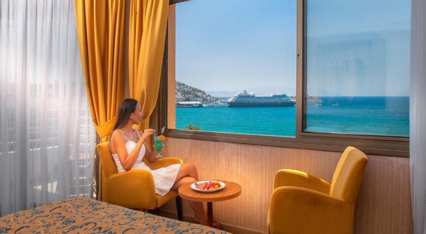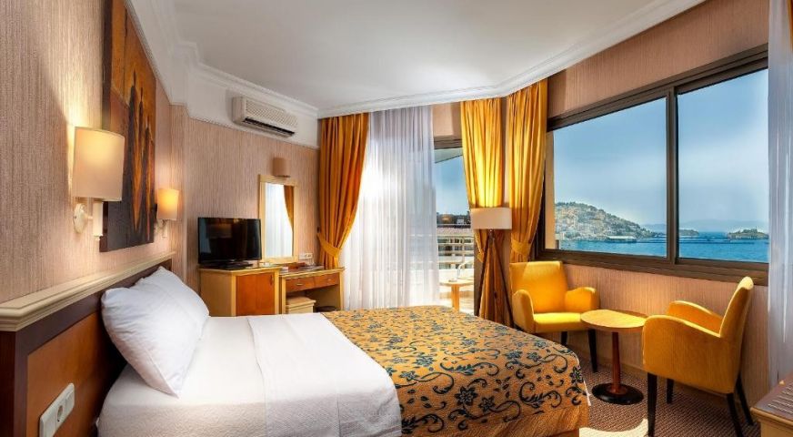 Местоположение: Хотелът се намира в сърцето на Кушадасъ, само на 90 километра от летище Измир, срещу морето.