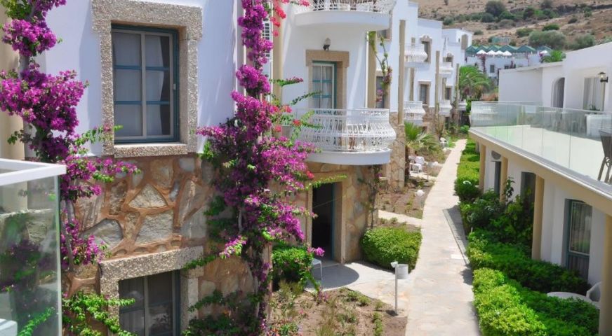 В г. Борум, в района на Gumbet, на 500 м от вятърни мелници и замъка на Бодрум, на 1 км от порта Мундус, на 40 км от международно летище Милас.