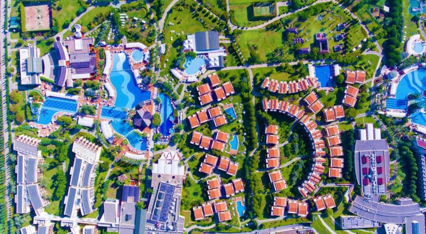 Основен ресторант, 3 а-ла-карт ресторанта (турски, азиатски, италиански – безплатно първо посещение на два от тях по избор, при минимум 7 нощувки и предварително направена резервация), 4 бара, 5 открити басейна, СПА център, салон за красота, 3 конферентни зали, магазини, Wi-fi интернет – съгласно концепцията на хотела.