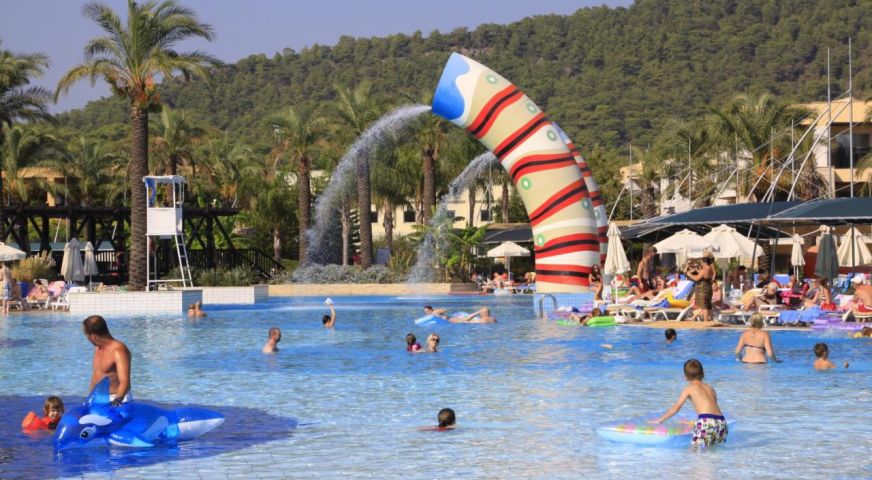 За децата: два детски басейна, водни пързалки, детска дискотека, мини-клуб, бебешка кошара (безплатно), детски столчета за хранене (безплатно), детегледачка (платено),