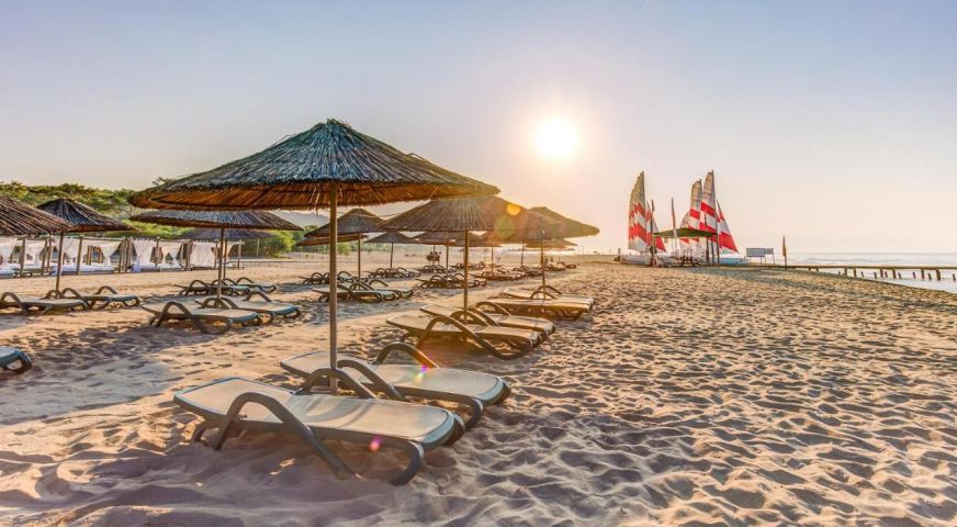 Собствен, пясъчен плаж. Чадъри, шезлонги и матраци на плажа и при басейна - безплатно.