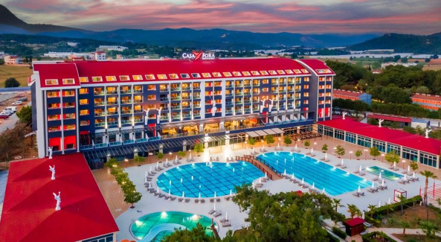 На територията на хотела: открит и закрит басейн, основен ресторант, 3 а ла карт ресторанта (средиземноморски, турски и рибен, с предварително резервация и еднократно използване на един за седмичен престой), 3 бара, фитнес зала, СПА център, безжичен интернет WiFi.