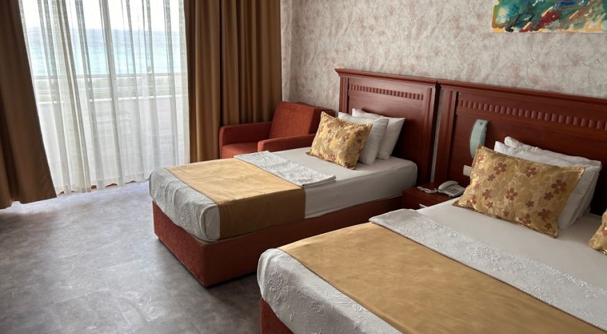 Стаи: STANDARD ROOMS - приблизително 26 м² и са разделени на помещения с изглед към градината и морето, разположени на 1, 2 и 3 етаж на хотела; Разполагат с едно двойно легло или две стандартни единични легла. Оборудвани са с директна международна линия (срещу допълнително заплащане), безжичен интернет с Wi-Fi връзка и Led телевизор със сателитно излъчване, включително детски канали, климатик и система с електронни ключове, самостоятелни бани с душ, чехли, тоалетни принадлежности, сешоар и кърпи, мини бар, сет за приговяне на чай и кафе, електрическа кана.
