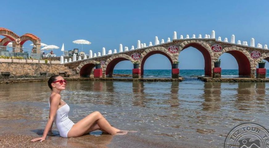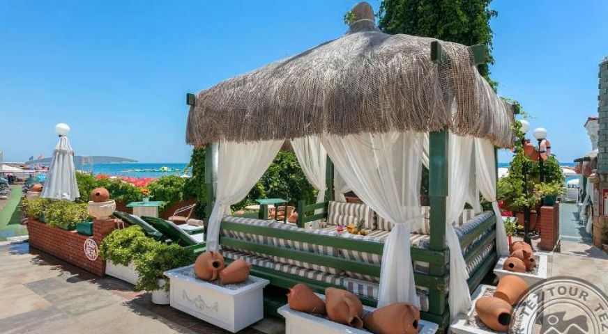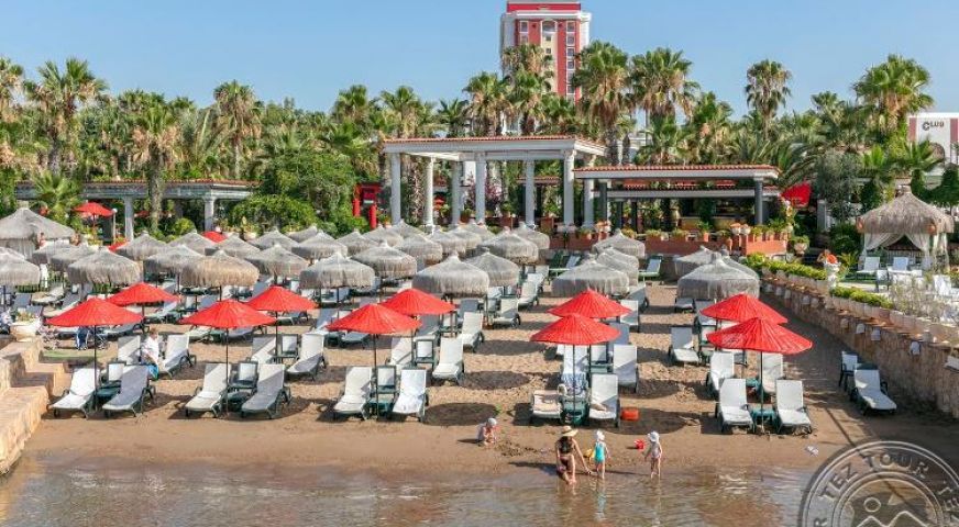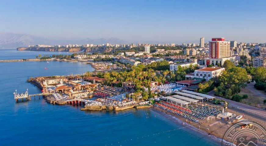 Пясъчен вход в морето, което е рядкост за хотелите, разположени в самия град Анталия. Оригинална зелена територия. На територията на хотела е разположен популярен ювелирен магазин.