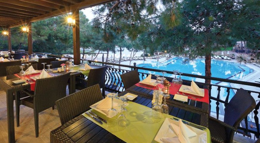 Освен основният ресторант, който предлага закуска на бюфет, късна закуска, обяд, вечеря (24-часов ултра ал инклузив). Хотелът предлага и а-ла-карте ресторанти (заплаща се допълнително): рибен, турски и интернационален.