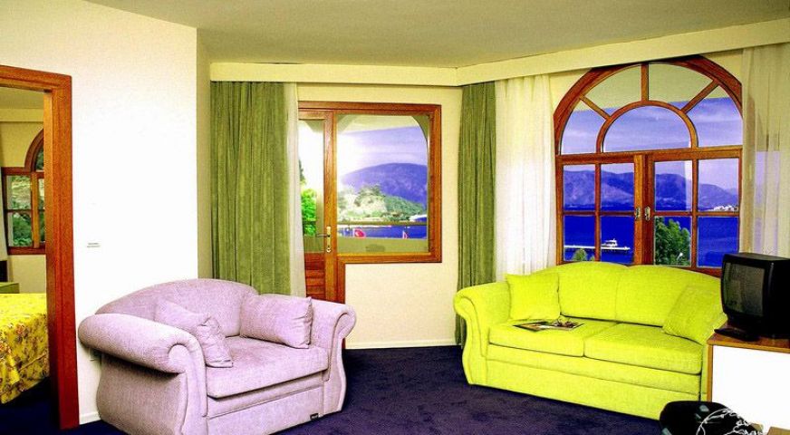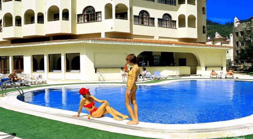 На 105 км. от летището в гр. Даламан, 8 км от центъра на Мармарис, в Ичмелер, на 50 м. от брега на морето с обществен плаж – пясъчен. Реновиран 2024