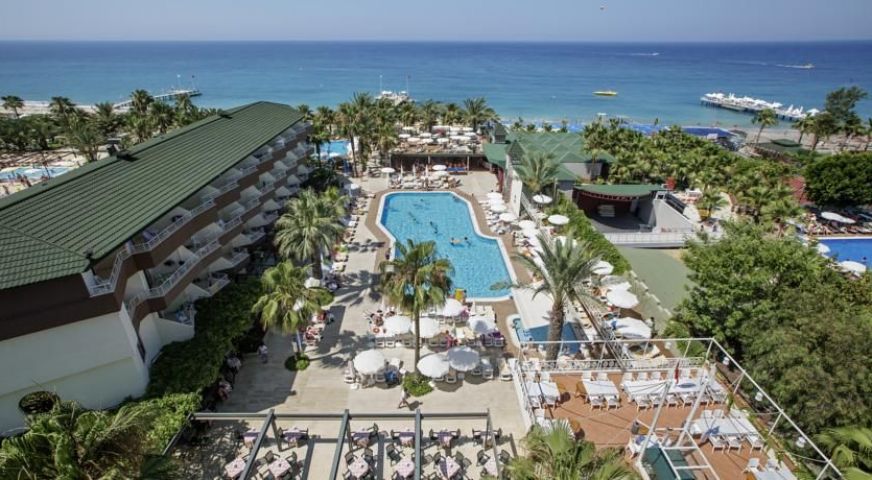 Хотелът разполага с 2 басейна, водни пързалки, безплатен Wi-Fi, вътрешен и външен ресторант, които предлагат турска кухня и интернационална, снек бар и американски бар.