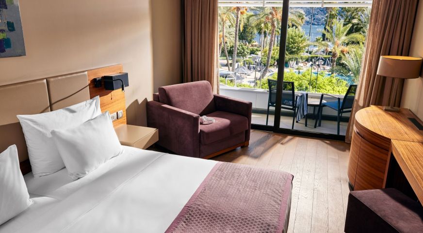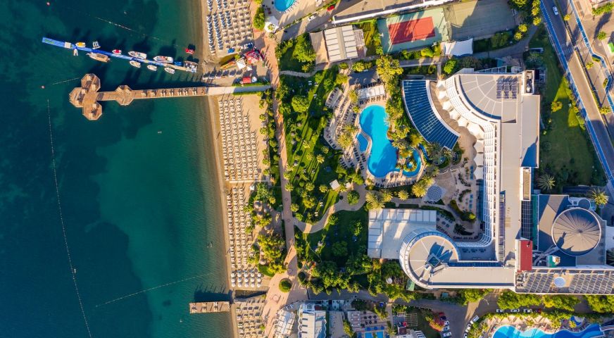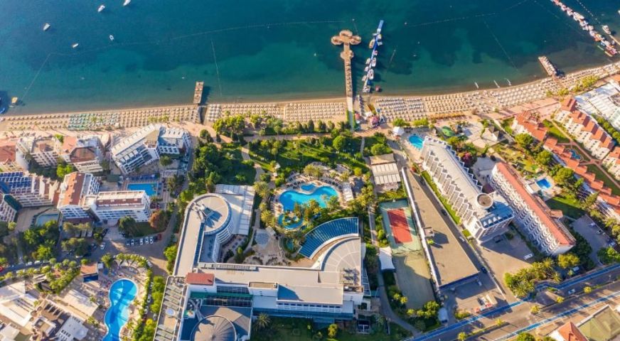 Хотелът се намира на 134 км. от летище Милас, на 98км от летище Даламан, на 2 км. от центъра на Мармарис, на брега на морето. Построен през 1991 г. Реновиран през 2012 г. на обща площ от 22 000 м2.