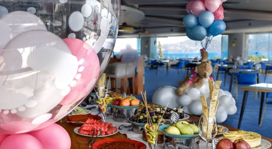 Открит басейн, закрит басейн (с подгряване на водата), детски басейн, турска баня, дискотека, сауна, парна баня, джакузи, фитнес център, аеробика, 3 тенис-корта (през деня), тенис на маса, билярд, дартс , детска площадка, шоу-програми.