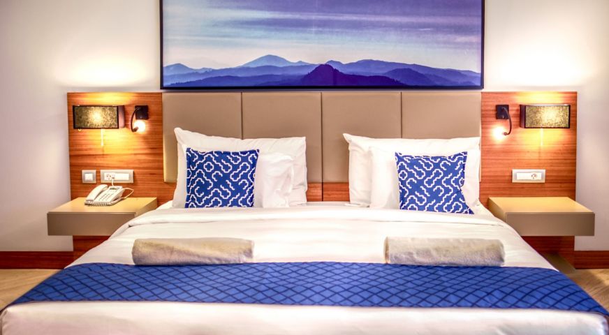 Хотелът разполага общо с 324 стаи, всички оборудвани с климатик, телевизор, телефон, сет за чай/кафе, баня с душ, сешоар, сейф (платен), интернет (платен), балкон. Почистване на стаите - всеки ден, смяна на спалното бельо и кърпите - 3 пъти в седмицата.