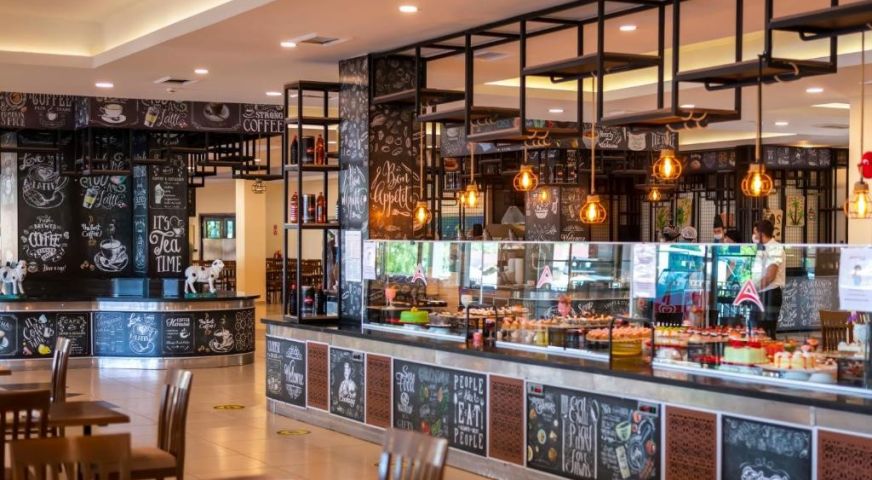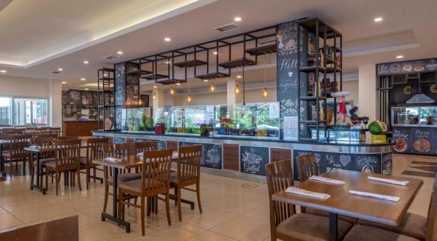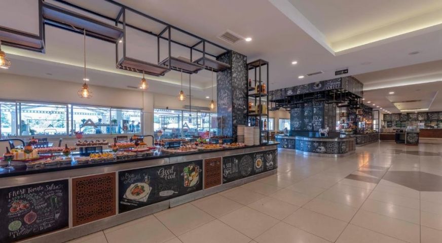 На територията на хотела: Основен ресторант, снек ресторант, 3 бара, дискотека, 2 открити басейна, 3 водни пързалки, СПА център, магазини.