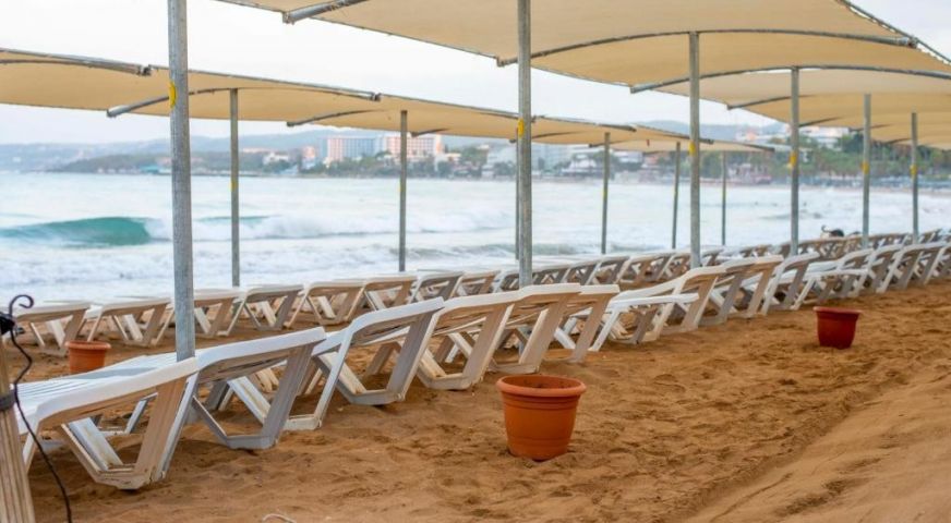 Плаж: Собствен пясъчен плаж пред хотела. Безплатно ползване на чадъри и шезлонги на плажа и при басейна. Плажни хавлии - с депозит.