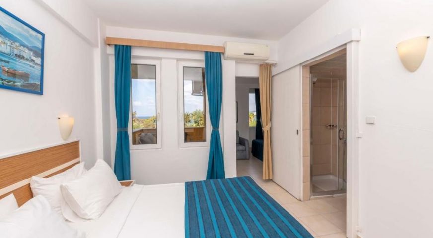 В стаите: Хотелът се състои от двадесет 3-етажни корпуса с общо 384 стаи. Всички стаи са оборудвани с индивидуален климатик, сателитна телевизия, телефон, баня с душ, сешоар, минибар (вода при пристигане), сейф (платен), балкон, WI-FI (безплатно), под - теракот.
