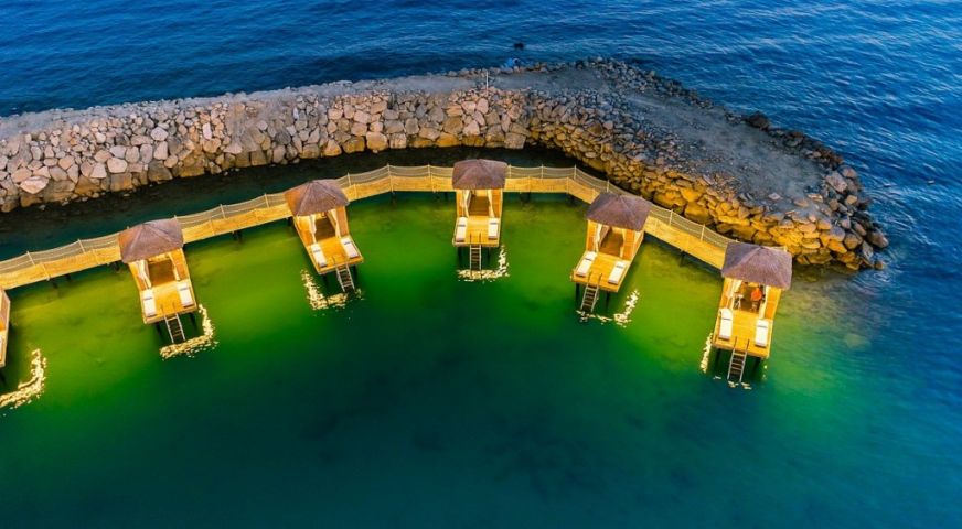 Намира се на 105 км от летище Анталия, на 100 км от центъра на Анталия, на 22 км от центъра на Алания, на брега на морето. Построен 2022 г., на обща площ от 40 000 м2.