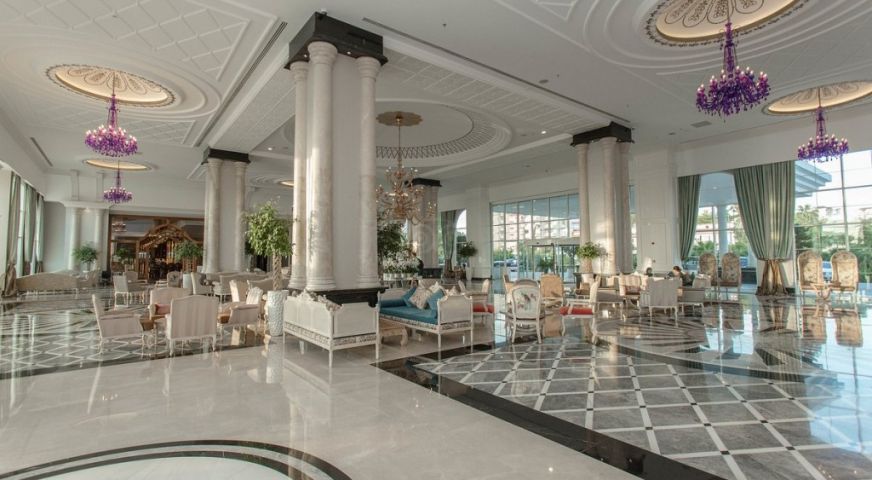 Основен ресторант, 6 а-ла-карт ресторанта (рибен, италиански– срещу заплащане)сладкарница, снек ресторант, гьозлеме, 5 бара (1 от които 24 часа), 2 открити и 1 закрит басейн, аквапарк с 4 водни пързалки, амфитеатър, СПА център, 13 павилиона на плажа, дискотека, магазини, 3 конферентни зали.