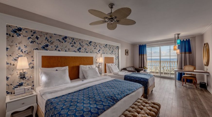 Стаи Villas: Platinum Villa (2 етажа с 2 спални, 1 хол, 2 бани + външно джакузи (В деня на пристигане се предоставят плато с плодове и вино) – 112 м2), Presidential Villa (5 спални, 1 хол, гардеробна, 5 бани, сауна, хамам, градина с чадъри, шезлонги, маса за хранене, частен басейн + джакузи (Специално обслужване от иконом, VIP трансфер и павилион на плажа) – 410 м2).