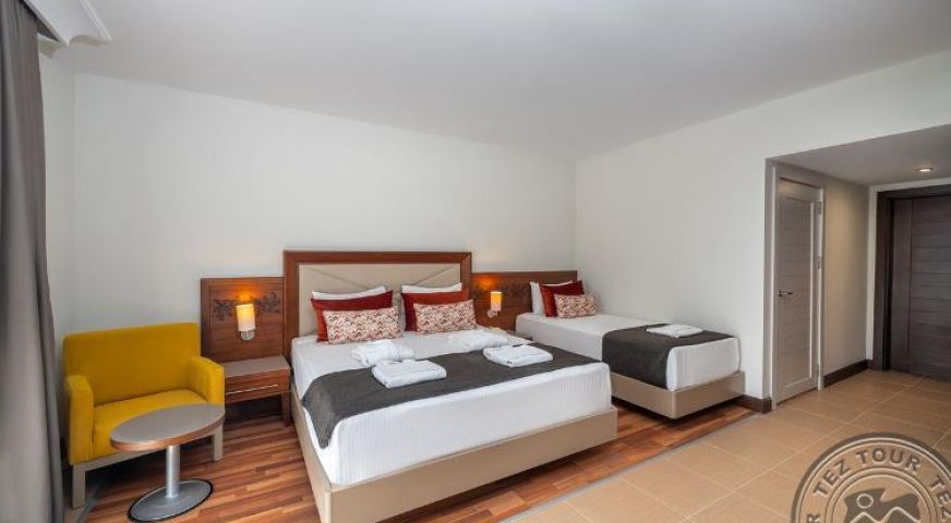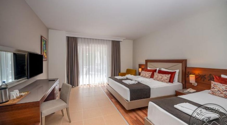Хотел, разположен на брега на морето и е заобиколен от малка, но красива територия . Светли, просторни стаи. Подходящ за активна почивка, така също за отдих с деца. Гостите на хотел Kirman Hotels Leоdikya Resort могат да ползват територията на хотел Kбrman Hotels Arycanda De Luxe.