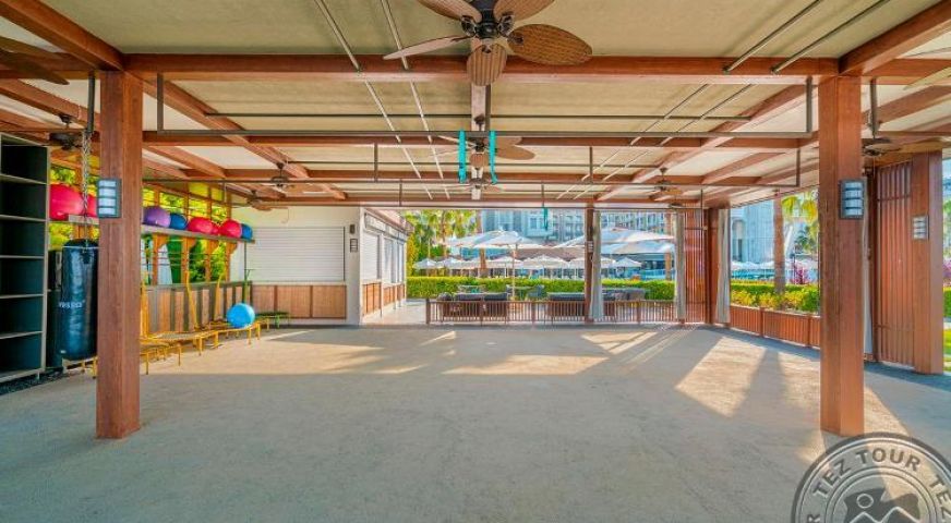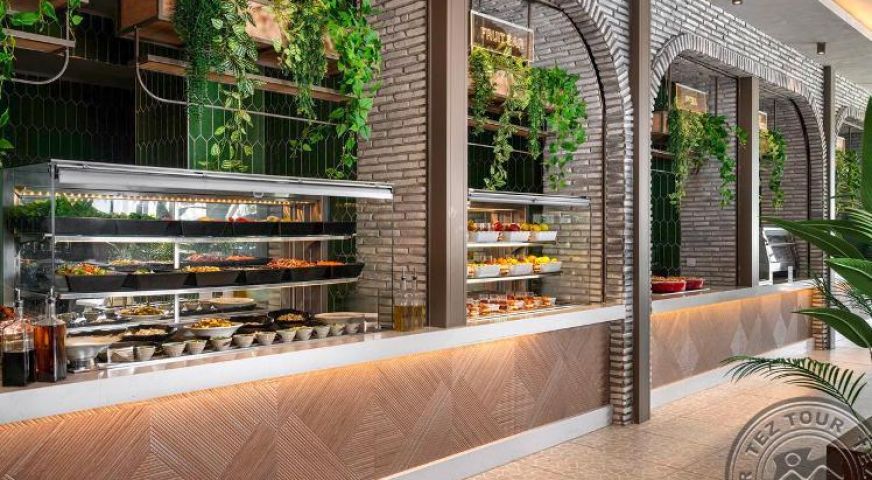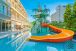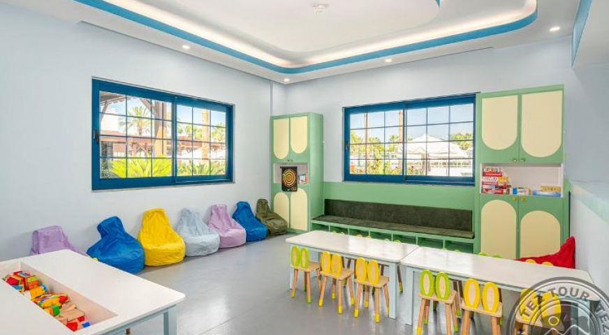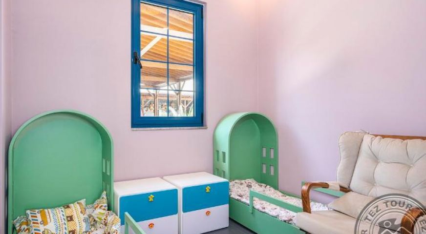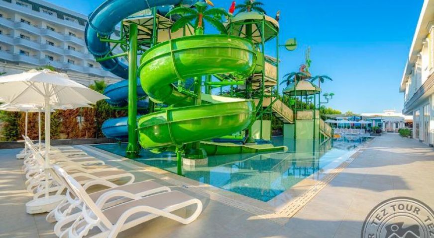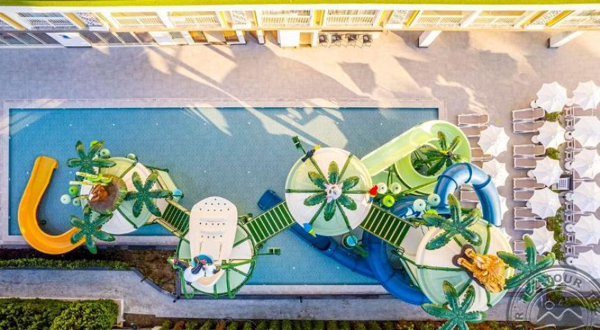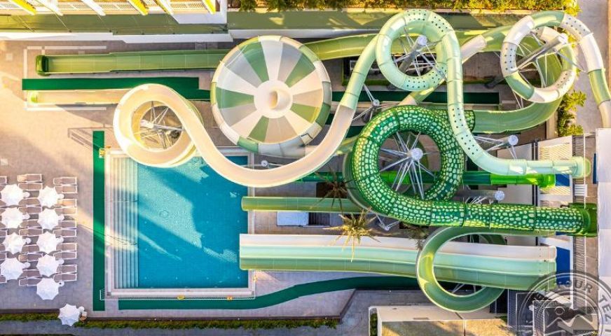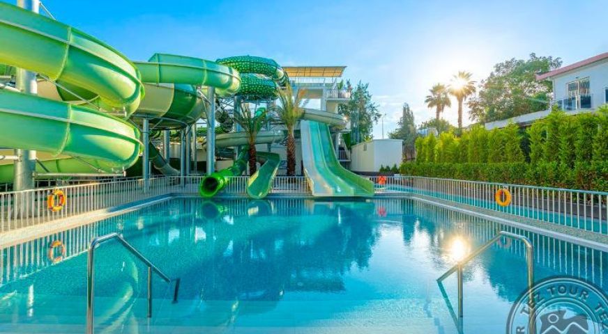 Хотел с малка територия, но добре поддържана и развита инфраструктура, подходяща за дейности на открито: водни пързалки, спортни и развлекателни игри за деца и възрастни.